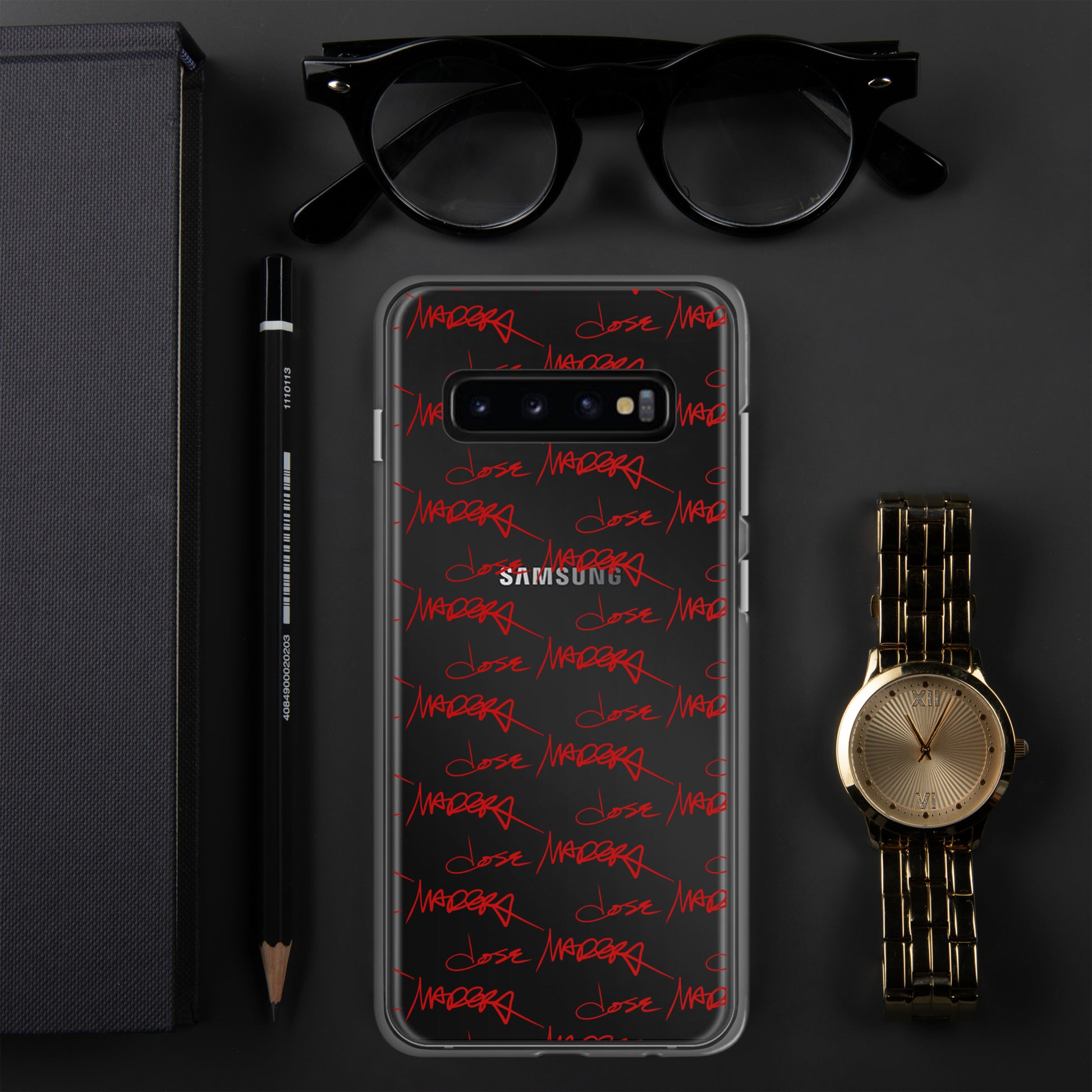 Firma de José Madera en rojo sobre funda transparente para Samsung®